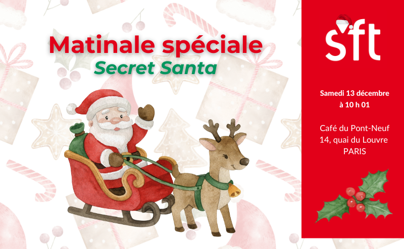 Pour clôturer l’année 2025, nous vous invitons à une Matinale spéciale Secret Santa. Le principe ? Vous apportez un cadeau d’une valeur inférieure à 10 euros ou fait maison, nous tirerons au sort votre binôme le jour J et vous lui remettrez votre cadeau et recevrez le sien.